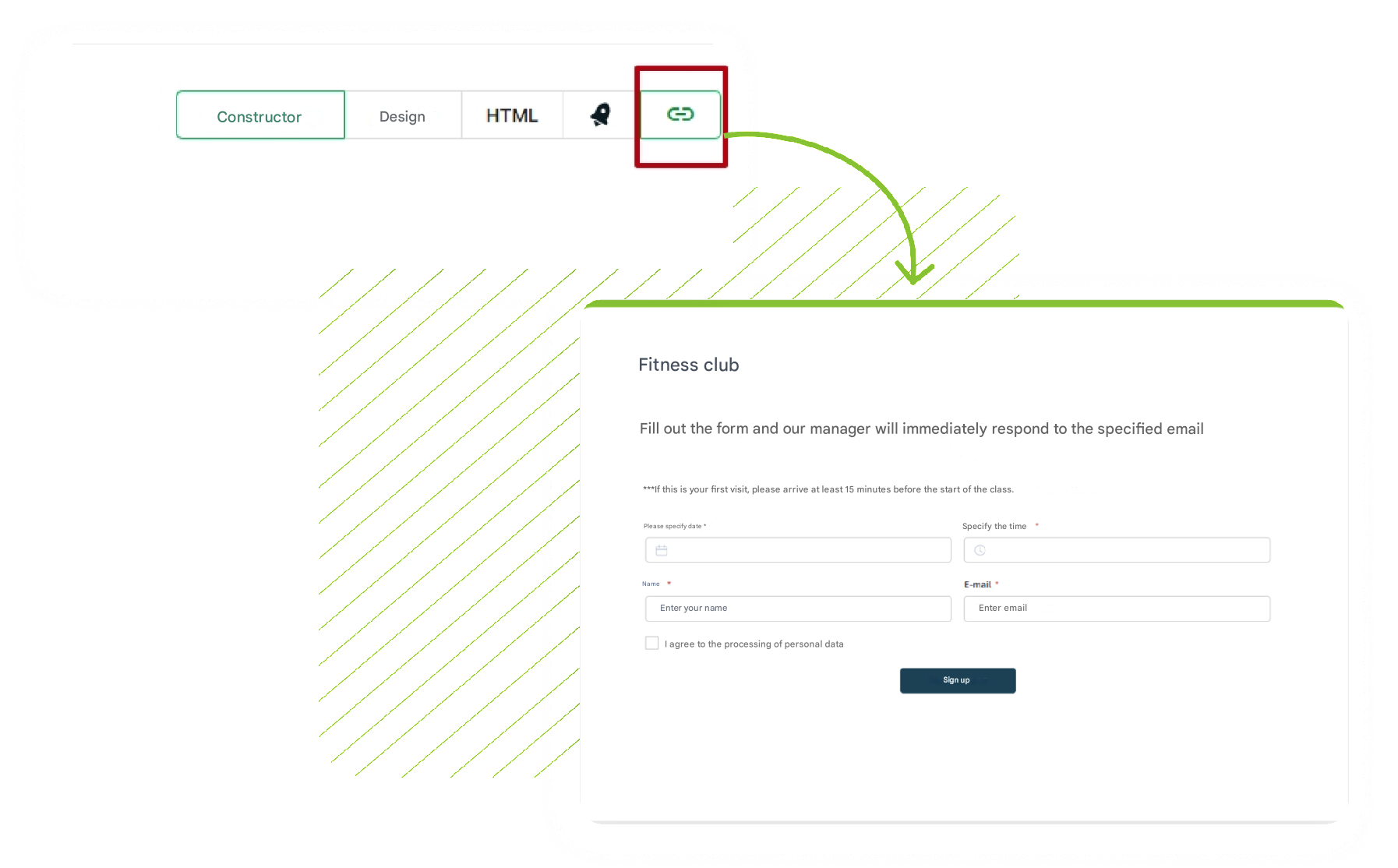 Create and use any forms without a website and post them on QForm via a direct link. Set up the necessary fields in a convenient constructor and collect applications in your own or built-in CRM system.
