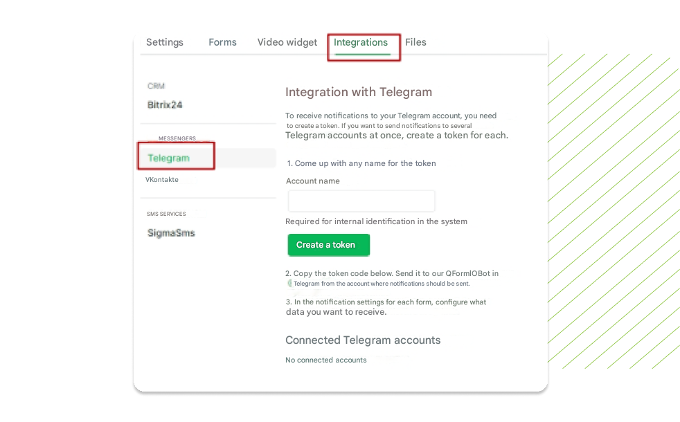 Open the “Notifications” tab, “Telegram Settings” section