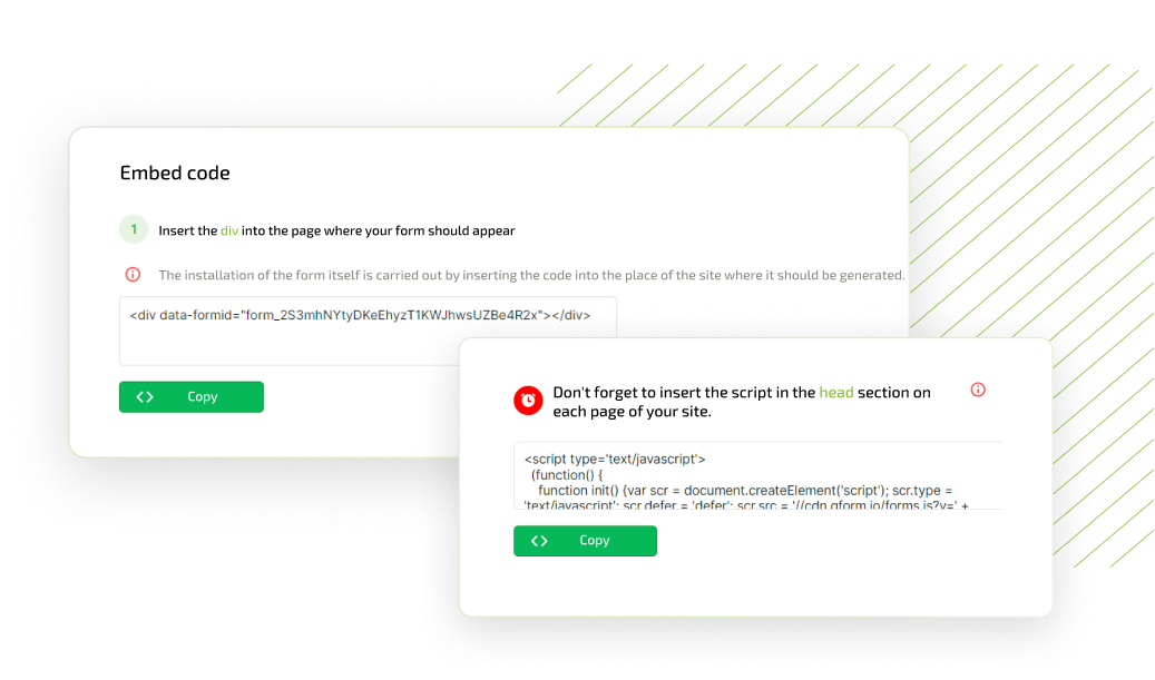 Copy the DIV to install the form and the script to call it, paste it into the site